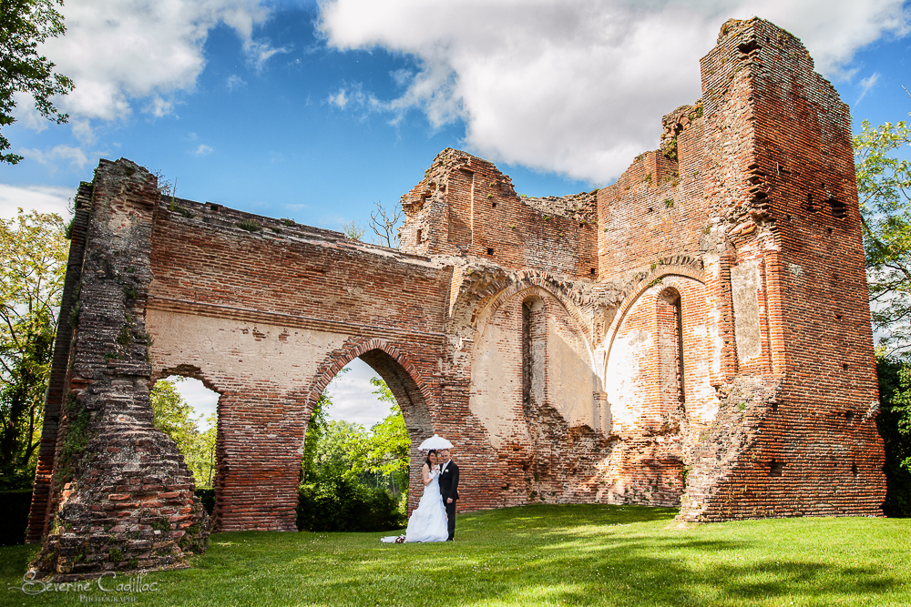 Le mariage a eu lieu à la mairie de Lisle-sur-Tarn et les photos ont été prises aux ruines du Castela à St-Sulpice.